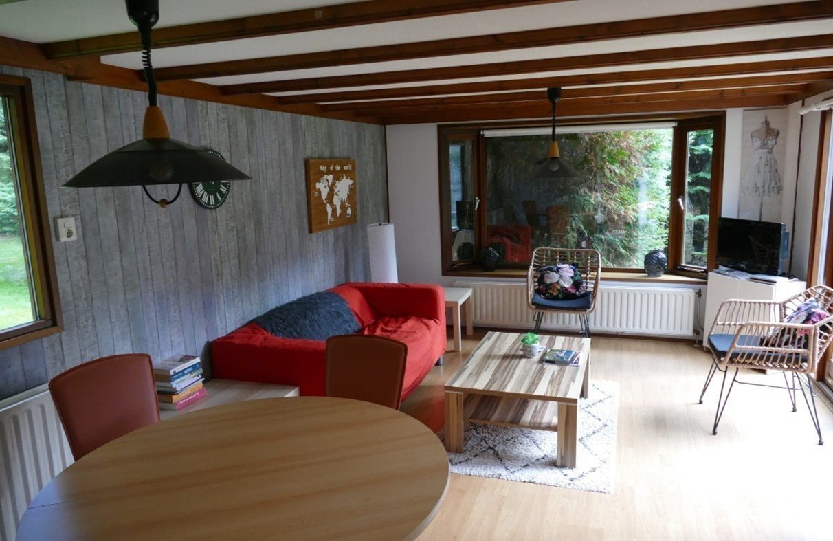 Houten chalet Sasseltermillen ligt centraal op de camping en biedt plek aan vier personen. Met een ruime woonkamer, twee knusse slaapkamers en een eenvoudig keukentje is er genoeg ruimte om samen te genieten.