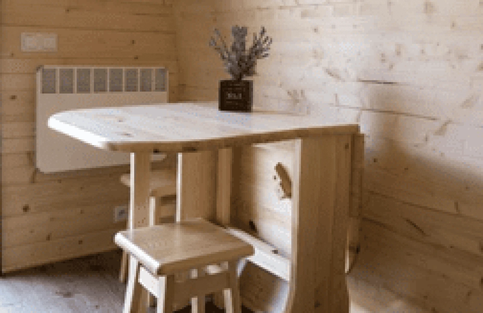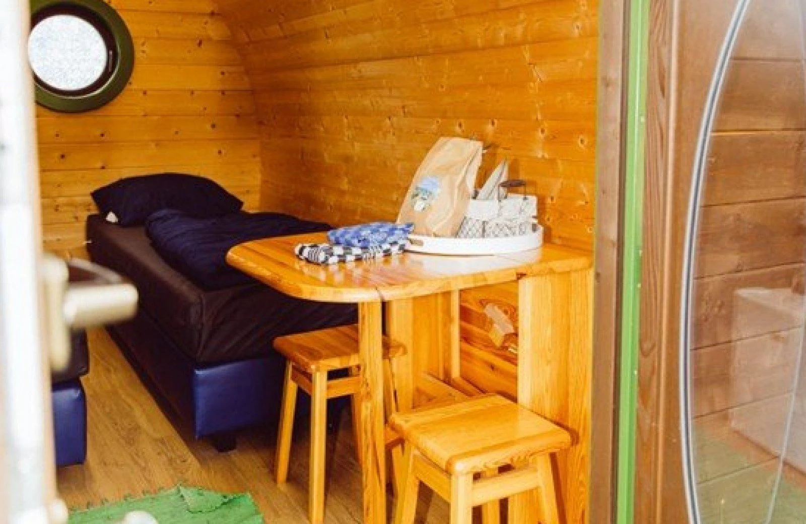 Elke Leaf heeft twee comfortabele boxspringbedden, een tafel met twee stoelen, en het nodige bestek, borden en kopjes. Een koffiezetapparaat is inbegrepen en je kunt een koelkastje optioneel bijboeken.